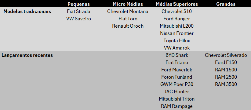 Divididas em quatro subsegmentos, as picapes vêm mantendo a média de 19% de participação de mercado nos últimos 3 anos