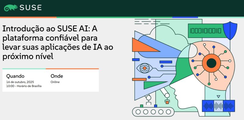 No dia 16 de outubro, às 10h, acontece o webinar “Introdução ao SUSE AI: A plataforma confiável para levar suas aplicações de IA ao próximo nível”. A sessão apresentará o SUSE AI, plataforma segura e escalável desenvolvida para cargas de trabalho de IA Generativa (GenAI). Os participantes entenderão como proteger dados sensíveis, reduzir riscos e acelerar projetos de IA com base em infraestrutura corporativa robusta.